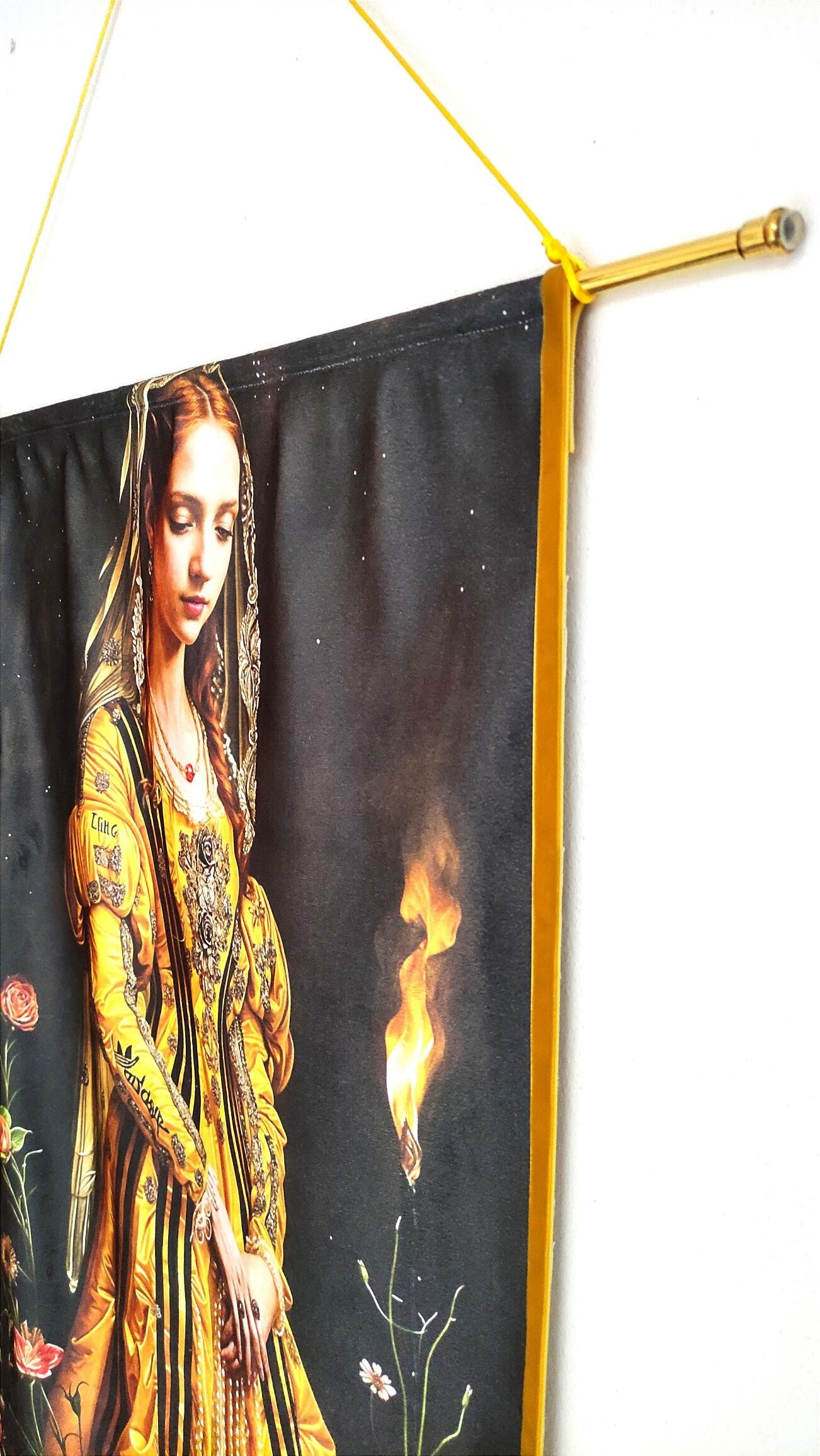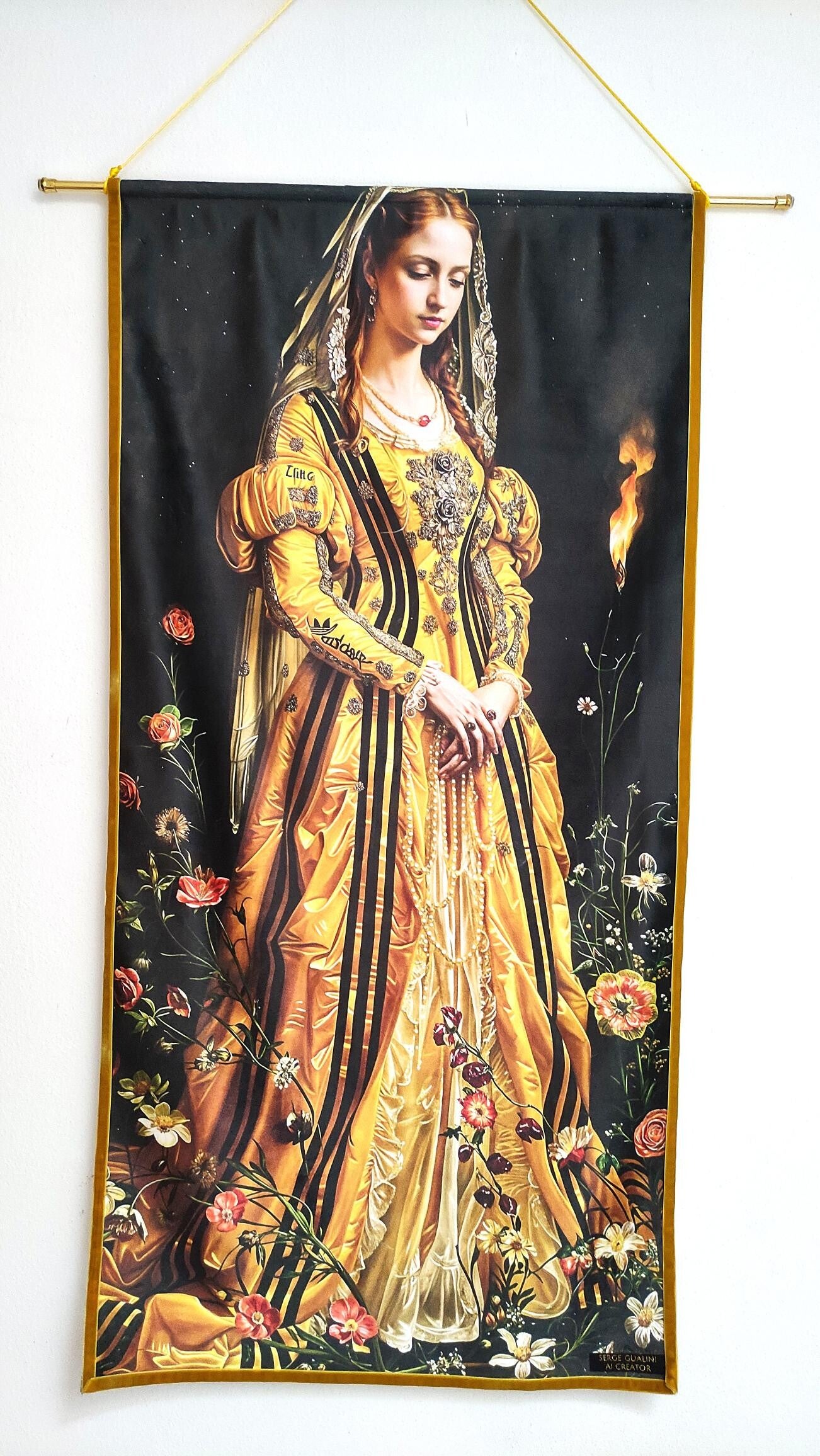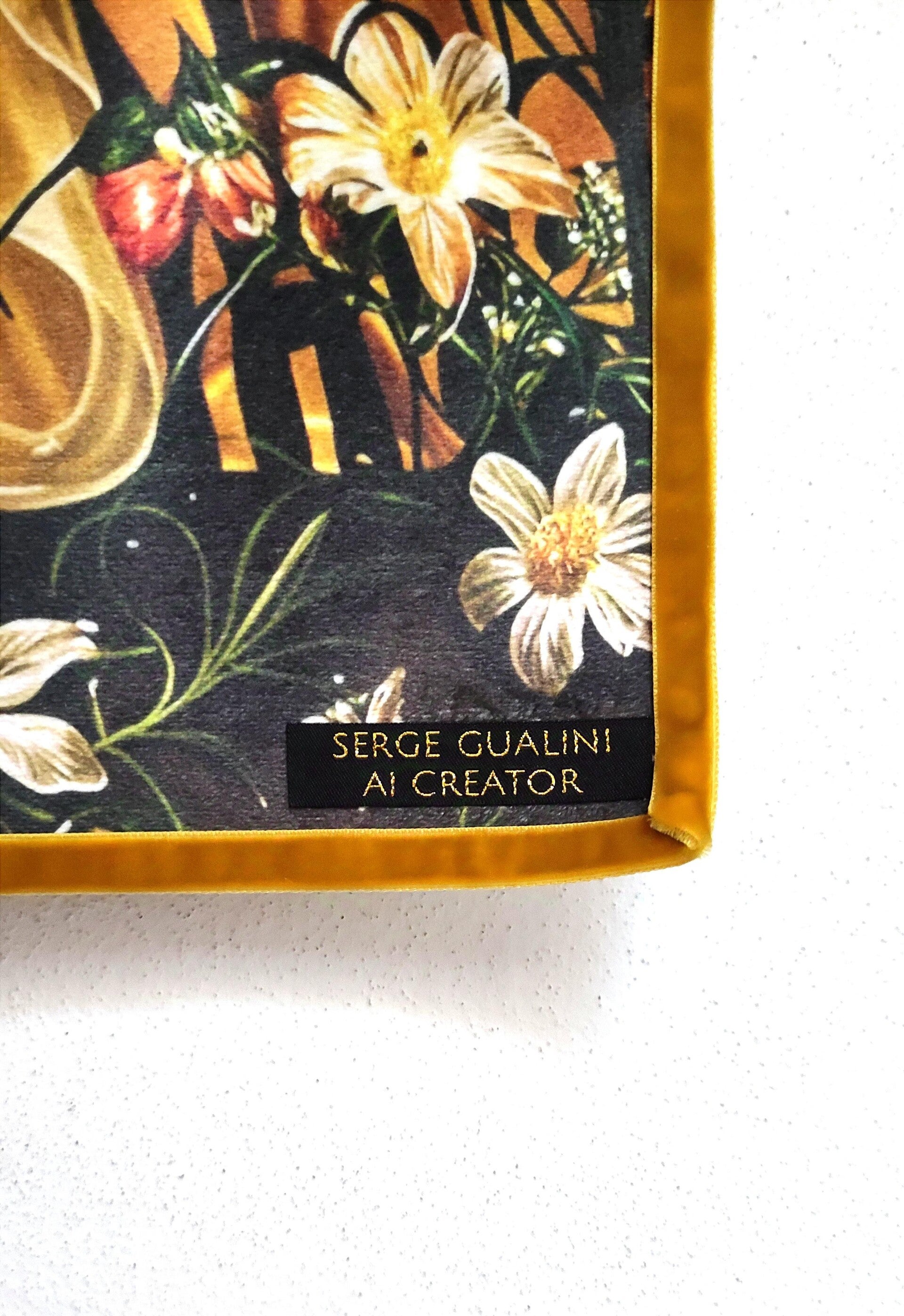 Stampa su tessuto, velluto scintillante.dimensioni: 48cmx98cmstecca ottone : 60cm2024